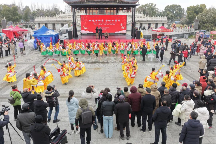 2月6日上午,句容市第三届优质农文旅商产品年货大集在葛仙湖公园热闹开市,由句容市文化馆组织的“茉莉花开·家门口赏好戏”暨国家村晚示范点村晚活动来到年货大集现场,为市民献上一场充满传统韵味与时代气息的文化盛宴,让大家在逛市集、购年货的同时,沉浸式感受句容浓厚的新春年味,成为今年年货大集上闪耀的亮点。